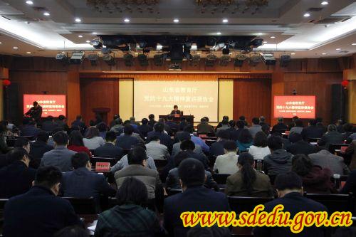12月7日上午,省教育厅举办宣讲党的十九大精神报告会,党的十九大代表,省委高校工委书记,省教育厅厅长、党组书记左敏宣讲党的十九大精神。左敏提出,深入学习贯彻十九大精神,写好山东教育奋进之笔。
