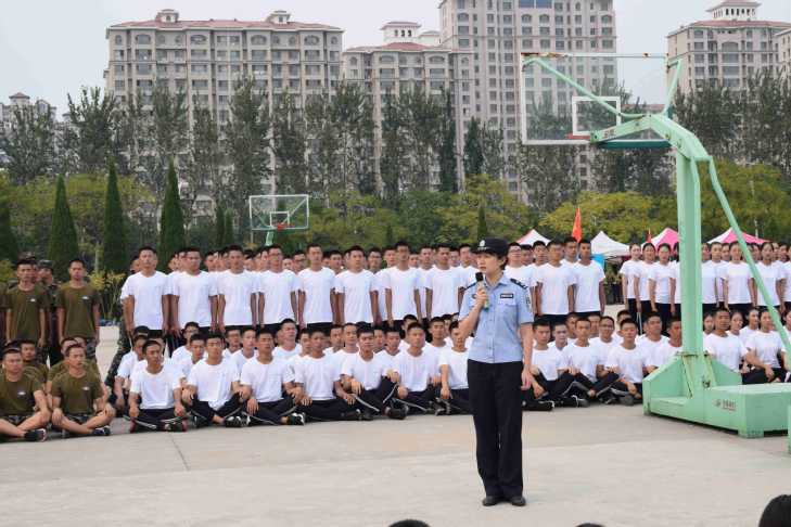 为增强2018级新生的防骗和反邪教意识,提高学生的自我保护能力,创建平安校园,9月12日下午,我校在军训场地举办防止网络诈骗及反邪教专题讲座。特邀市公安局滨城分局彭李派出所的民警来校现场授课,我校4000余名新生参加了本次活动。