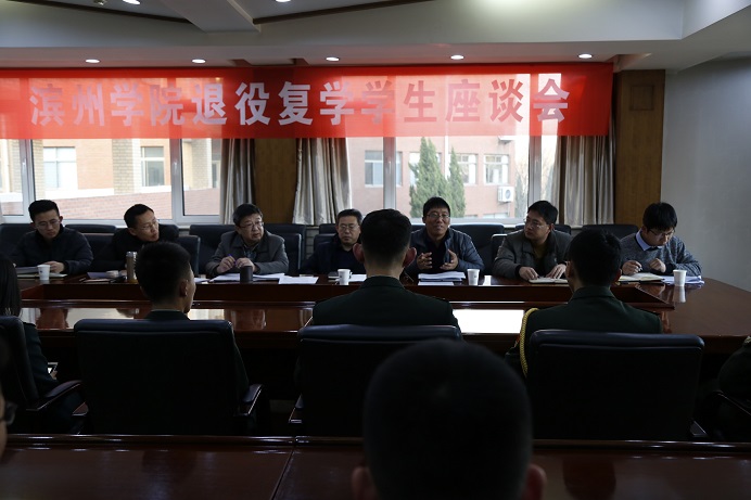 为了解我校退伍复学学生学习、生活和思想状况,帮助解决退伍复学学生学习、生活中的实际困难,整合退伍复学学生资源,进一步推动我校国防教育和征兵工作的顺利开展。12月11日下午,我校在行政楼南楼210会议室召开2018年退役复学学生座谈会。学生工作处副处长王建、后勤管理处副处长陈国林、教务处副处长李建庆、学生工作处副处长王一鸣及学生工作处相关科室负责老师参加了会议。