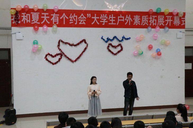 王香美鼓励全体同学积极参加户外素质拓展活动,在保持学风优良的同时,让自身综合素质全面发展。活动由《开场舞》拉开序幕,随后进行相声表演《倒打灯》,将整个活动推向了高潮,歌舞《斑马斑马》《流浪》,吉他弹唱《杀死那个石家庄人》等一系列节目表演点燃此次开幕式的气氛,各班派代表进行“七个幸运儿”游戏活动,最后,由我院文艺部副部长孙浩磊致辞,宣布开幕式圆满完成。