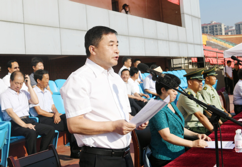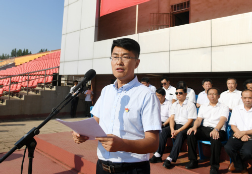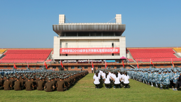 金风送爽,秋色怡人。9月3日,我校2019级新生开学典礼暨军训动员大会在田径运动场隆重举行。我校党委书记刘春华,党委副书记、校长李长海,党委副书记宋淑平,党委委员、副校长胡波、李伟年,党委委员、组织部长孙才顺、宣传部长索向兴、统战部长林晓金,武警滨州支队支队长潘广平出席典礼。李伟年主持典礼。