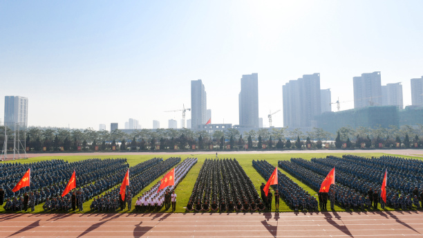 李长海代表学校党委、行政和全校师生,对2019级新同学表示衷心祝贺和热烈欢迎。他说,4000余名新同学的到来为聚英湖畔注入了新时代的青春活力,为陶园学林增添了新青年的靓丽色彩。他指出,滨州学院是一所历史底蕴深厚、师资力量雄厚、航空特色鲜明、就业前景远大的大学,希望同学们志存高远、砥砺奋进,做“自强”的滨院人,在拼搏的青春中成就美好华章;勤学善思、持之以恒,做“自律”的滨院人,严格行为习惯,在宝贵有限的大学时光里将人生的基石打牢、打深、打实;与人为善、明德明礼,做“厚道”的滨院人,以美好德行点亮璀璨青春;开拓进取、勇于超越,做“创新”的滨院人,为了追求真理、真知、真学问而孜孜不倦、勇往直前,追求卓越、练就“硬核”,完成由成人向成才的华丽转身,奋力开启绚烂多姿的人生华章。他勉励同学们在接下来的军训中不怕苦,不怕难,服从指挥,听从命令,上好开学第一课。