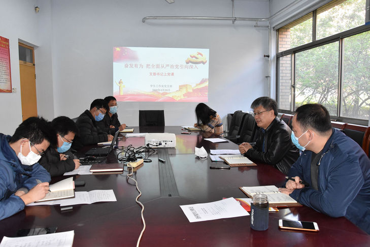 4月20日,学生工作处党支部书记贾卫东在办公南楼105会议室为支部全体党员讲了题为《奋发有为,把全面从严治党引向深入》专题党课。
