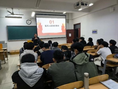 王贝贝老师则是对入伍政策进行了深入解读。她指出国家高度支持和重视大学生投身国防事业,对大学生入伍后退役复学,报考军校,经济补助等方面做了详细讲解,让同学们对大学生入伍的优惠政策有了更加清晰的认识,为征兵工作奠定了坚实基础。