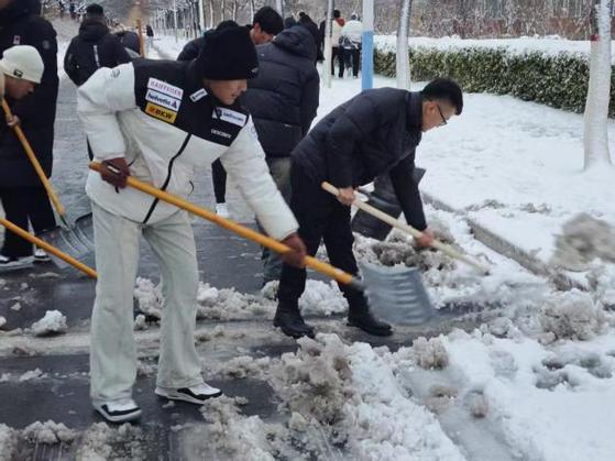 下午四点,学生党员们在支部书记和组织委员的带领下,携带铁锹、扫帚等工具,顶着严寒与暴雪,对学院楼前广场、校园主干道及宿舍区陡坡台阶展开集中清扫。他们分工明确,配合默契,有的挥舞铁锹铲除厚厚的积雪;有的用扫帚清扫残留的雪渣,不放过任何一个角落;有的帮助宿管阿姨,在宿舍楼旁,为同学们出行保驾护航;尽管寒风凛冽,雪花不时飘落,但党员们热情高涨,干劲十足,为同学们开通了一条安全温暖的通道。在除雪过程中,他们还不时地提醒过往师生注意安全,在大雪中向学校传递着温暖。