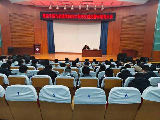为强化学生纪律意识,筑牢校园安全防线,3月16日,航空宇航与机械学院在明德报告厅召开2021级学生违纪警示教育专题会议。会议由年级辅导员刘云龙主持并作专题部署,全体2021级学生参加。
