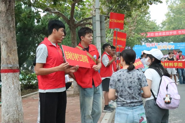 报到期间,学院在校园内设置迎新服务站,为新生办理报到手续,提供各类指引和咨询服务。新生到校后,均由志愿者一对一衔接,提供“一站式服务”高效协助新生完成身份核查、宿舍入住、公寓用品领取等一系列入学手续,让新生和家长感受到家一般的温暖与便捷。与此同时,学院老师与志愿者积极配合民警、街道办事处工作人员,发放宣传手册、现场案例讲解,开展防诈骗、安全防护等宣传教育工作,为新生开启大学生活筑牢安全防线。