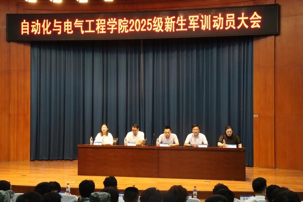 9月7日,自动化与电气工程学院在明德报告厅召开2025级新生军训动员大会,党委书记杜常青出席会议并作动员讲话,会议由学院党委副书记金志杰主持,学院全体辅导员、2025级全体新生班主任参加。