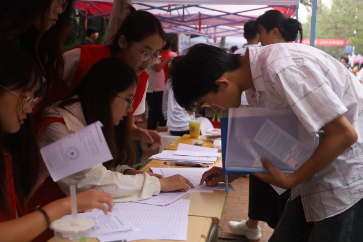 材料审核组工作人员仔细核对新生身份证、录取通知书等材料,针对生态环境相关专业咨询、宿舍分配等问题逐一细致解答。学长学姐们以饱满热情迎接新伙伴,他们不仅主动交流分享学习心得与生活经验,还鼓励新生们勇于突破自我、快速融入集体。这份关怀与期许,如同春风化雨,滋润着每一位新生的心田。