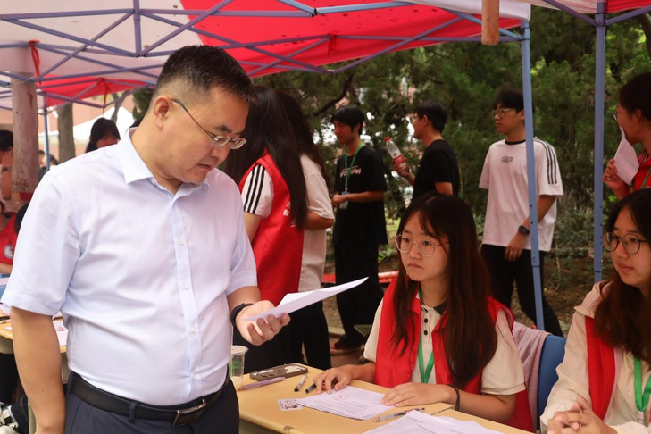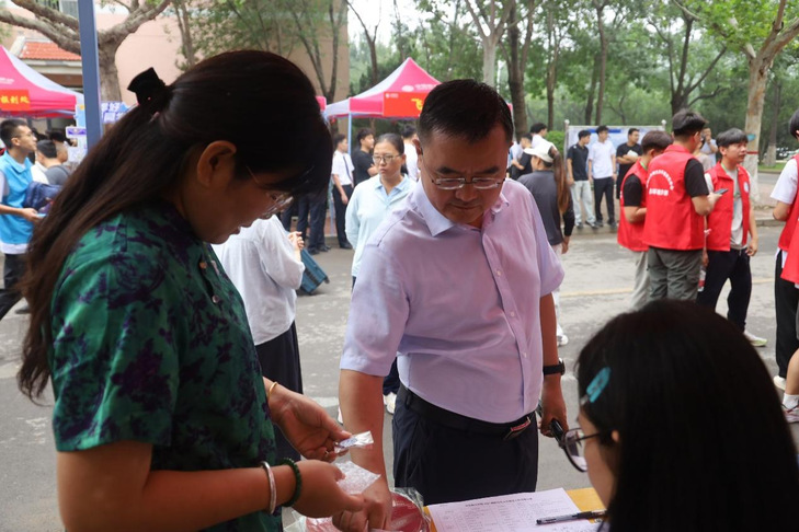 学部领导深入迎新现场,一方面与工作人员亲切交流,细致询问报到流程是否顺畅、物资准备是否充足;另一方面耐心接待新生及家长,细致解答他们的疑问,用温暖话语安抚初来乍到的紧张情绪。领导们以全程护航的实际行动,为 2025 级新生逐梦生态的大学征程,筑牢了充满希望的起点。