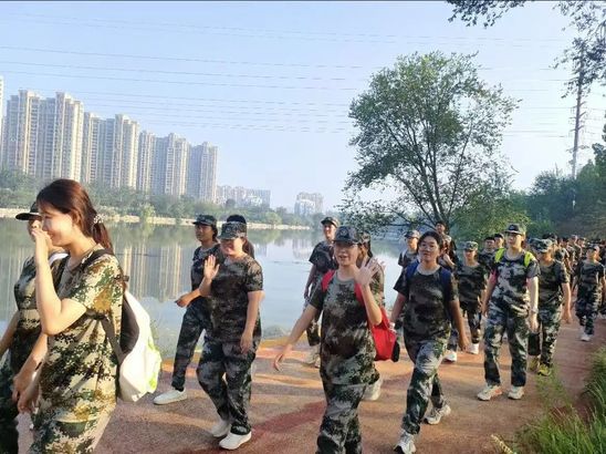 清晨,新生拉练队伍整装待发。同学们步伐铿锵整齐,每一步皆彰显着大家昂扬向上的青春姿态;口号响彻云霄,每一声都传递着同学们团结奋进的精神力量。