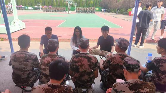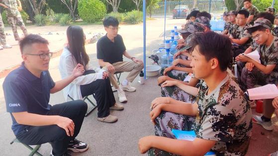 “你的家乡是哪里?”“学校食堂的饭菜是否吃得惯?”“身体状况是否能承受当前的军训强度?”在同学们熟悉的军训现场,少了正式场合的拘束,同学们更愿意与辅导员老师聊;话题扩展至生活、家庭、个人爱好等内容上,没有了学业的话题压力,同学们愿意聊的更多。