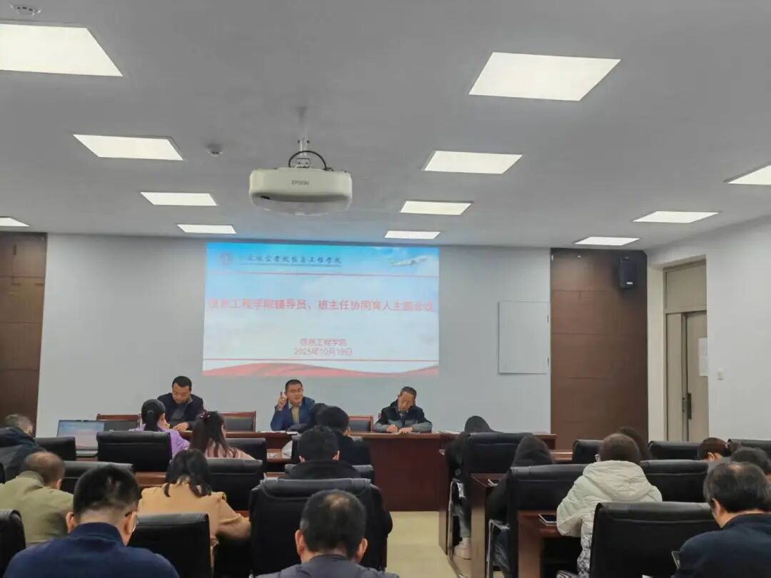 为深入贯彻党的教育方针,扎实落实立德树人根本任务,进一步凝聚育人共识,10月19日,信息工程学院召开辅导员、班主任、专任教师协同育人主题会议。学院党委书记李华出席会议,全体辅导员、班主任、部分教师代表共同参会。会议由学院党委副书记刘占贵主持。
