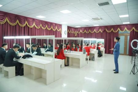 王妍对山航企业文化进行了宣讲和解读,帮助学生进一步熟悉和了解公司。刘燕祺、赵丽分别讲授《山航客舱英语广播词》《山航乘务员专业化形象》课程。刘燕祺紧密结合航空公司和乘务员岗位对英语能力的要求开展教学,并在模拟客舱广播环节逐一纠正发音,提升学生专业表达和交流能力。赵丽聚焦乘务员的职业形象塑造,围绕仪容仪表、着装规范、神态管理等展开系统讲解与现场示范,针对学生存在的具体问题进行指导,切实提升其专业化形象管理水平。