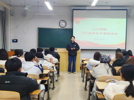 为帮助新生班委明确职责,掌握工作办法,快速适应岗位,11月21日,人文学院于7号教学楼201室开展第三次2025级新生班委培训会。本次会议由高宇老师主持,媒体宣传部、组织运营部、就业指导部及社团发展部联合主讲,全体2025级新生班委参会。