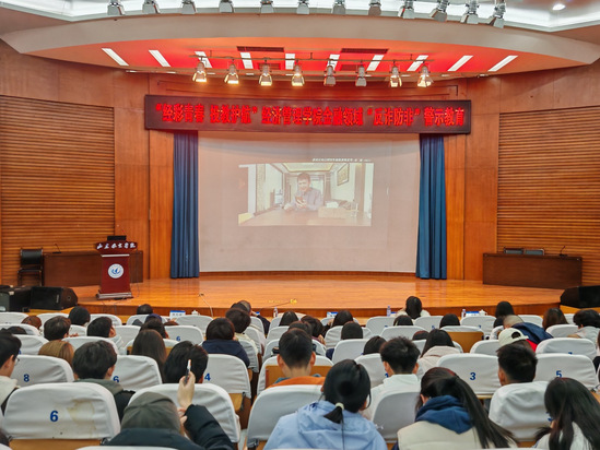 警示教育环节进一步强化了风险防范认知。全体与会人员共同观看“网络兼职诈骗案例”“虚假平台投资诈骗案例”专题教育片,片中通过对真实案例的深度剖析与风险提示,让“天上不会掉馅饼”的风险常识深入人心。与会师生直观了解到“内幕消息”“刷单赚钱”等骗局的本质与危害,进一步敲响了金融安全警钟。