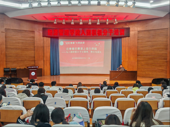 为进一步筑牢青年学子理想信念根基,引导入团积极分子端正入团动机,11月15-16日,经济管理学院在明德报告厅开展了2025年下半年入团积极分子培训。学院300余名入团积极分子及优秀团员代表参加了培训。