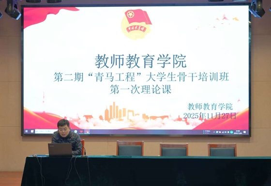 刘俊杰”在开场中强调,青马学员既要做“马克思主义的坚定信仰者”,更要做“师范精神的生动践行者”,将理论学习与专业成长深度绑定。刘俊杰以“学习青马,领悟思想,启航青春”为核心议题,全面讲解了“青马计划”的历史背景、核心内容和深远影响,激励学员全身心投入“青马工程”的学习,将学习、思考、实践和宣讲相结合,将理论知识与实际行动相融合,确保思想和行动与党的二十大精神保持一致,在面对重大挑战和困难时勇于承担责任、勇往直前。