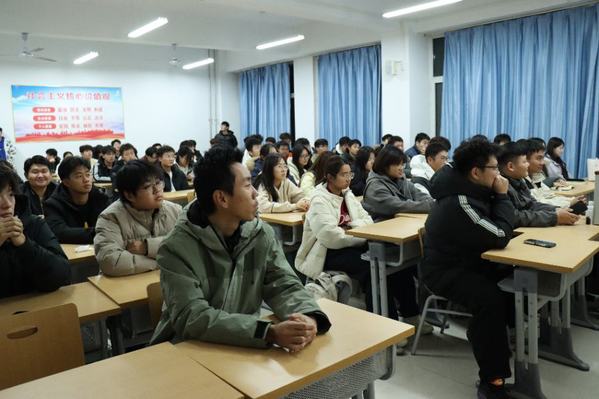 为深化“红蓝双融”大思政课建设,进一步提升学生干部的综合素养与履职能力,搭建学生骨干交流互鉴的成长平台,2025年11月27日,自动化与电气工程学院“E课堂”宣讲团在11教209教室举办“我的学生干部之旅”主题分享。辅导员崔凯晨主持,2025级全体学生干部参加。
