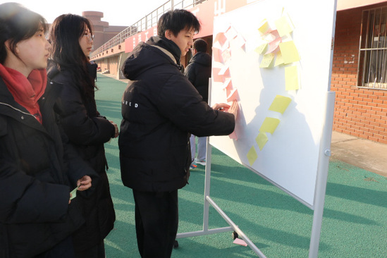 本次拓展活动巧妙设计了多项融合趣味性、协作性与思想引领性的项目。“薪火相传”接力跑象征着学院二十载风雨兼程、薪火不息的发展脉络;“时光打卡墙”前师生们郑重签下姓名,以笔墨定格青春印记,寓意着师生同心同德、奋力前行;“心晴打卡墙”上一张张便利贴写下心情寄语与奋斗期许,传递者师生共筑学院辉煌的坚定信念。活动现场气氛热烈,呐喊声、欢笑声此起彼伏。队员们彼此鼓励、相互支持,充分展现了经管学子蓬勃向上的精神风貌和紧密无间的团队情谊。