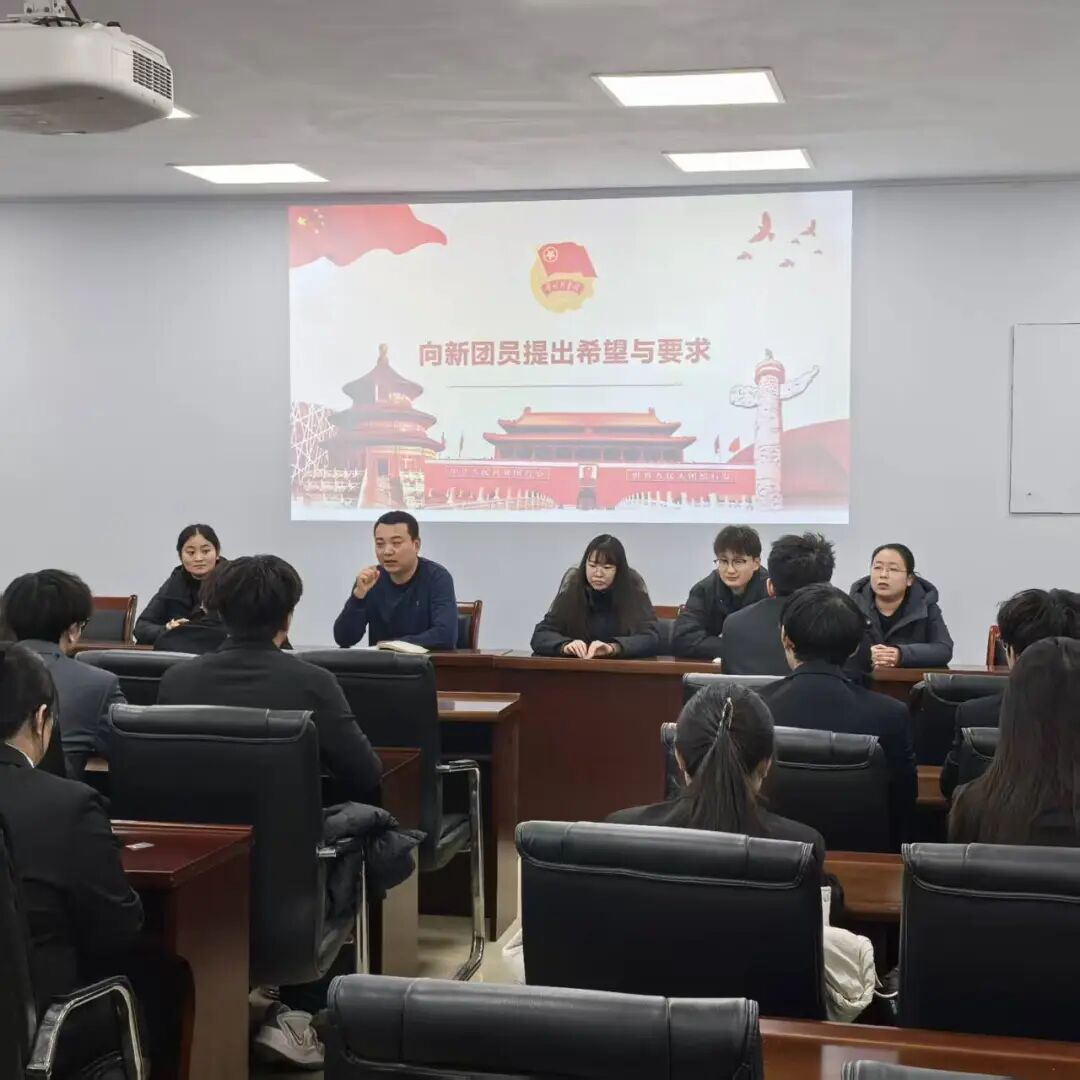 在优秀团员代表张廷哲的带领下,全体新团员面向鲜艳的团旗高举右拳,庄严宣誓。誓言铿锵有力,回荡在会场每个角落。新团员代表李慧颖在发言中深情表达对团组织的感激之情,承诺将以实际行动践行入团誓词,在学习和生活中争做表率。优秀团员代表臧宝鑫则结合自身成长经历,分享了在团组织培养下的收获与感悟,为新团员们提供了宝贵的经验建议,展现了新时代青年奋发向上的精神风貌。